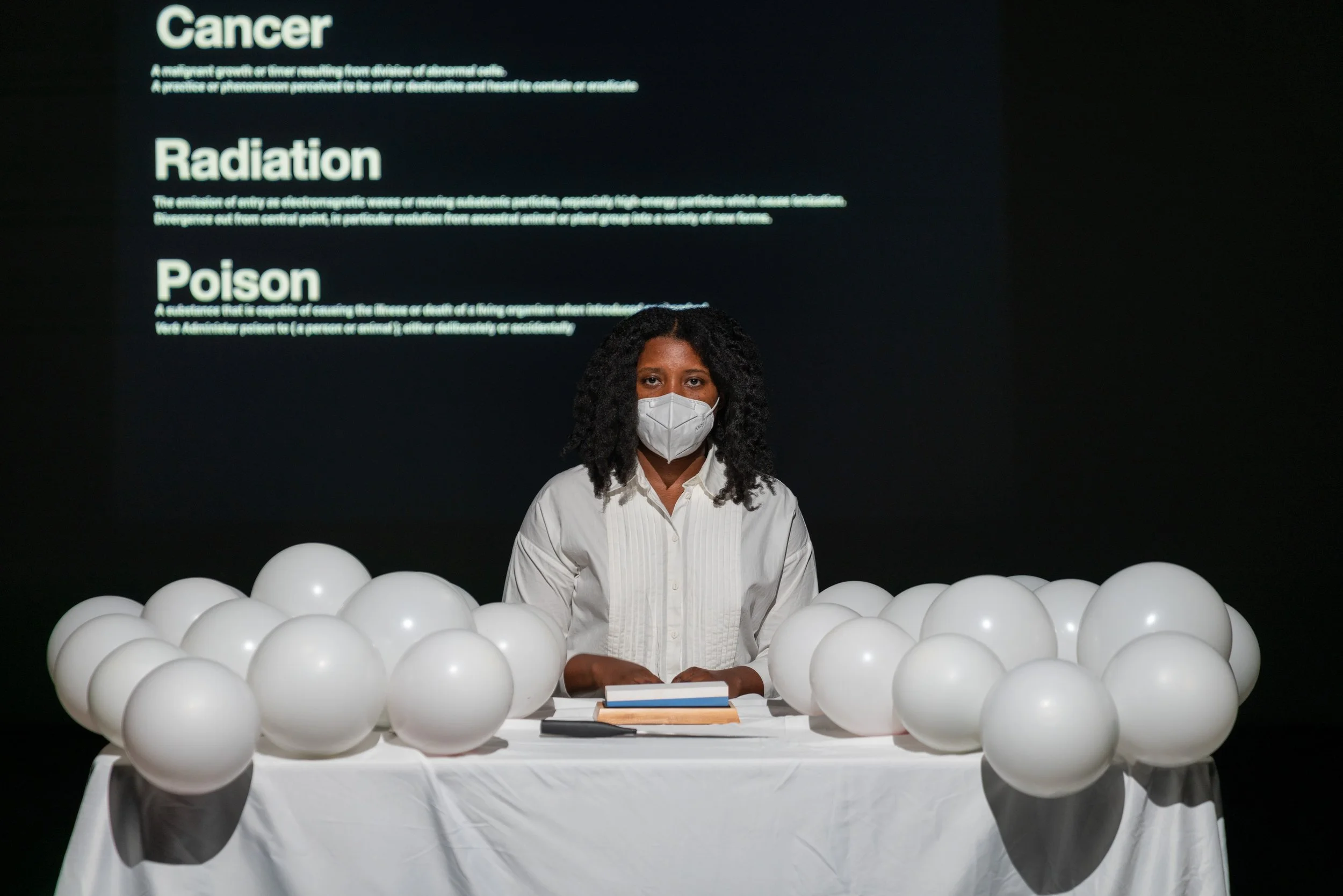 Interested in the science of spirit, she tests hypotheses with audiences, transforming the dynamic between performer and viewer into one of shared participation and discovery. Her work explores the emotional landscape and tensions of global anti-Blackness by researching the known—personal experience, Black vernaculars, and cultural memory—to illuminate the unknown. She is captivated with the mundane, finding meaning in everyday acts: washing clothes, walking, breathing, quiet listening, watching waves, and uncovering the mythologies woven into Black southern life.