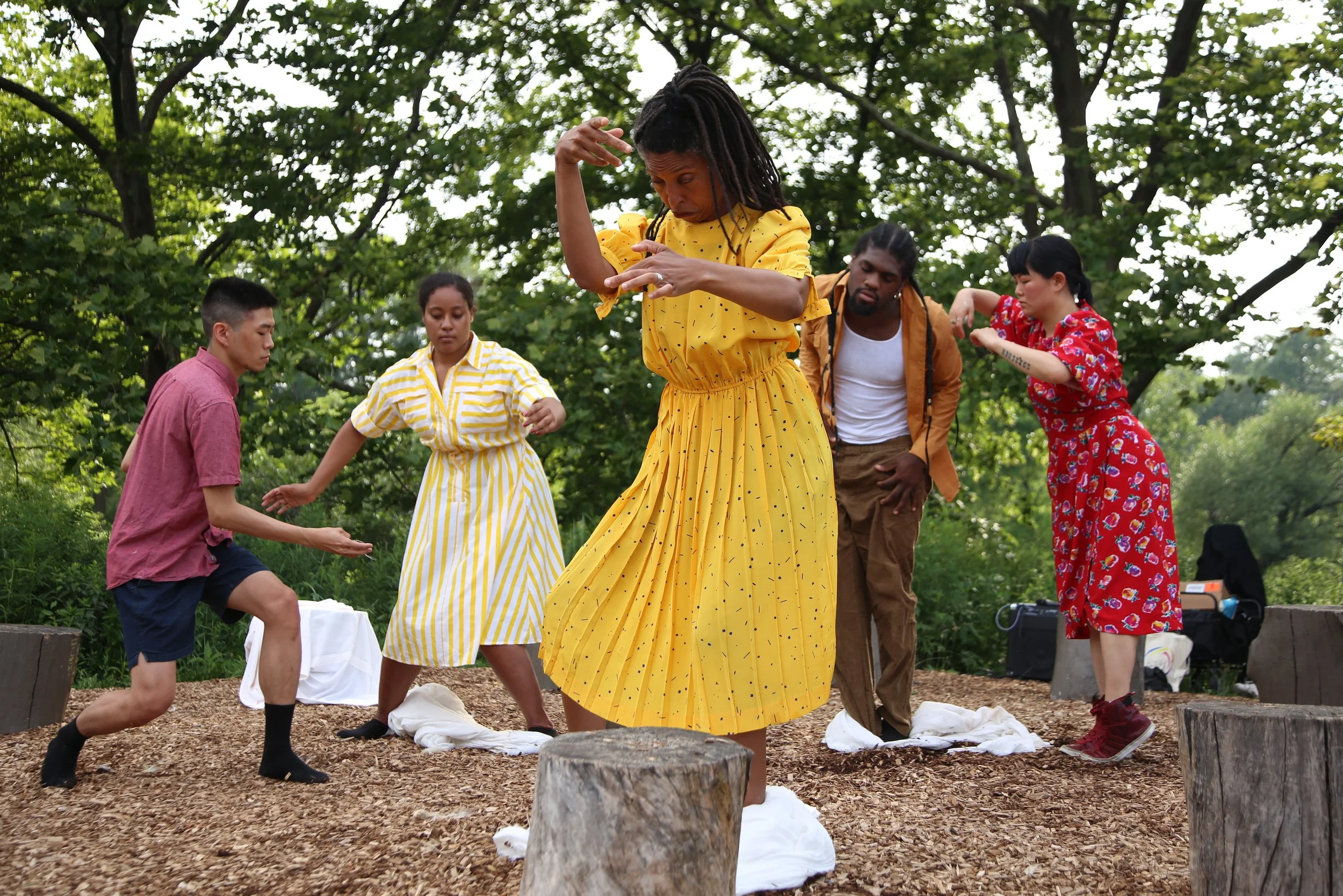 In addition, Helen used the residency for incubation and movement research, reworking her writings for a book of stories about the Asian American Pacific Islander experience, and creating choreography with Ajumma Rising, the self-organized Korean and Korean American flash mob group named after the Korean word for a middle-aged woman. These projects built on a participatory performance Helen created titled Weaving Cocoons; Colliding Monarchs, which brought awareness to Black Lives Matter and Asian Hate Crimes.