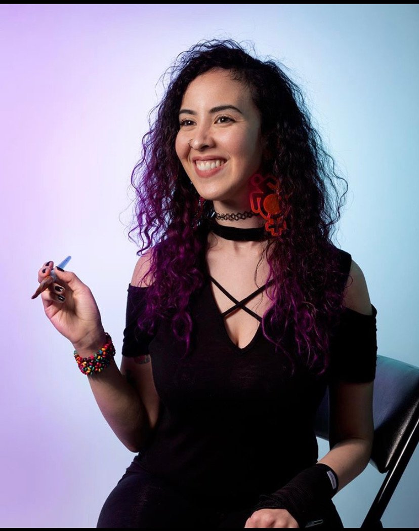 Working primarily in portraiture and mixed media, Ramos uplifts the stories of disabled, queer, and BIPOC communities with bold, emotionally grounded visual language. Her practice is shaped by lived experience and an unwavering commitment to disability justice. Ramos is known for creating space for difficult conversations about disability, identity, and belonging, both through her visual work and her facilitation skills. She is a co-founder of Cuerpos Justificados, a disability-led artist collective reclaiming space through justice, art, and culture.