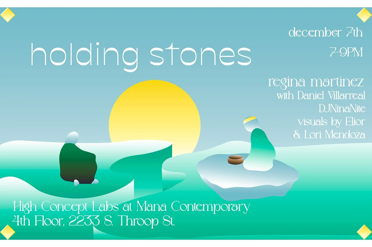 holding stones is a love story expressed in sound. Regina Martinez will be joined by guest percussionist Daniel Villarreal inside a visual world woven together by painter, elior, and floral artist Lori Mendoza. Welcome set by DJ Nina Nite.